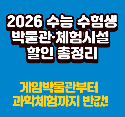 - 🎮 “2026 수능 수험생 박물관·체험시설 할인 총정리 – 게임박물관부터 과학관까지 반값 이벤트!”