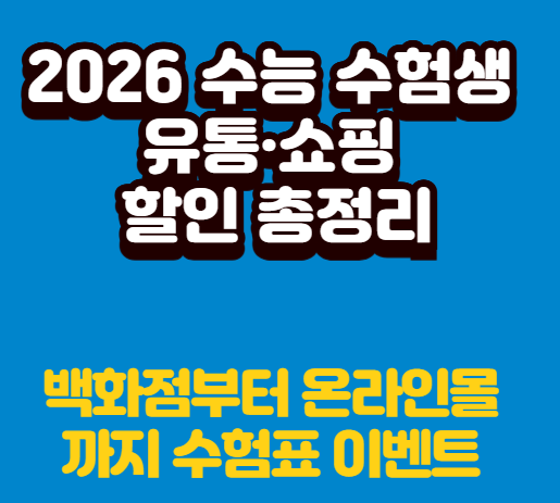 - 🎁 “롯데·현대·신세계까지! 2026 수능 수험생 유통·쇼핑 할인 이벤트 총정리”